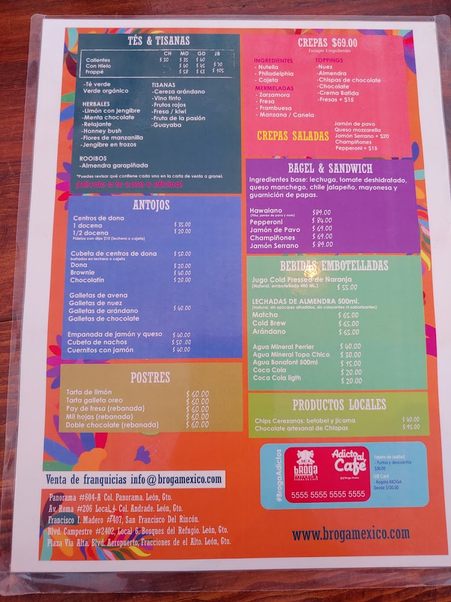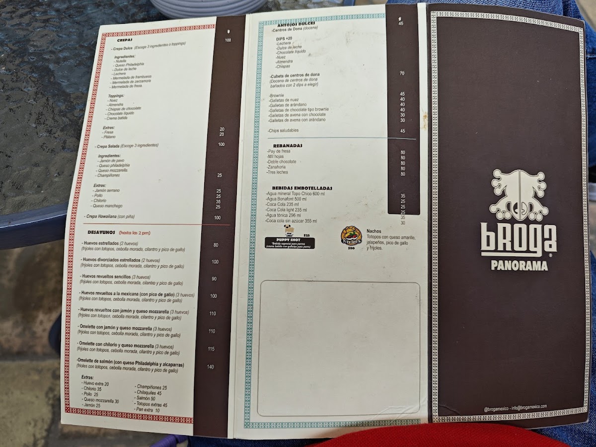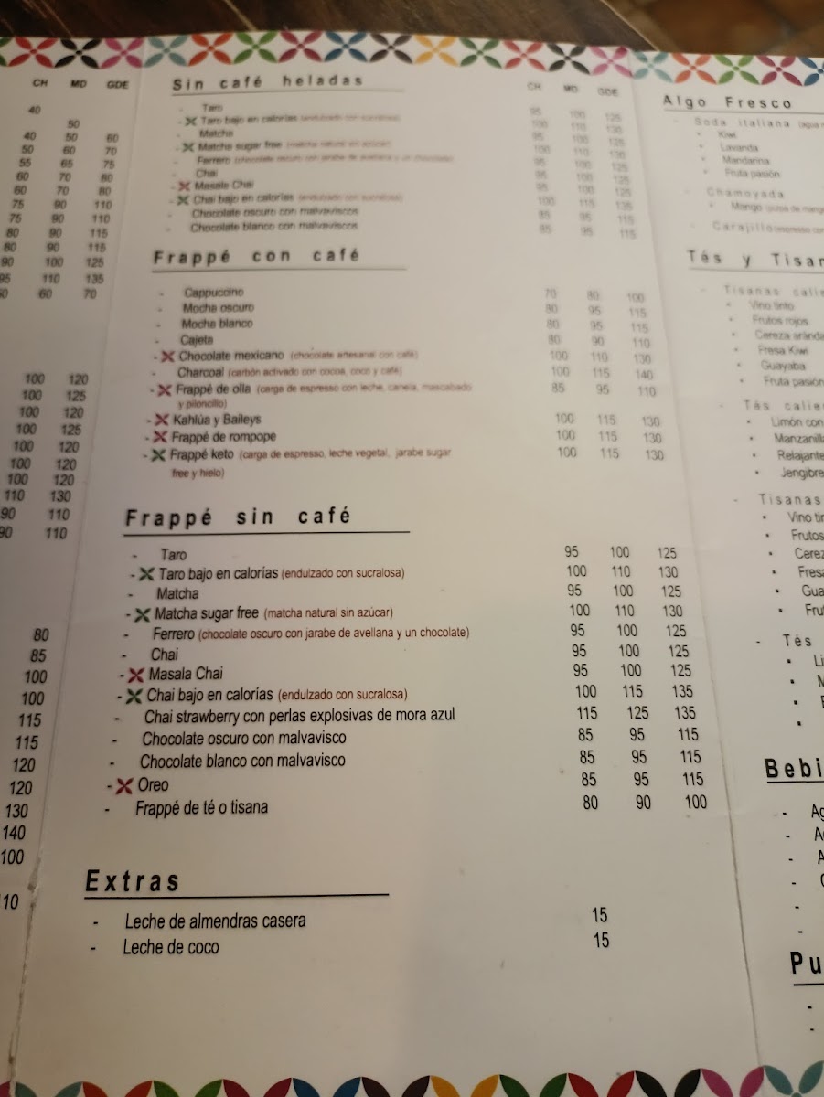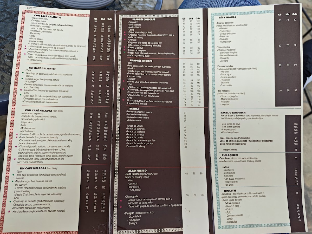 Expect a variety of beverages ranging from rich, traditional choices like Café Turco and Chocolate Mexicano con Café, to inventive frappes such as Frappé de Frutos Rojos and Frappé Chai Latte. Alongside these, you’ll find an assortment of sweet and savory options, including crepas filled with ham and mushrooms, fresh empanadas, or the indulgent Concha rellena de Nutella — all casual yet thoughtfully prepared to pair well with your drink.
