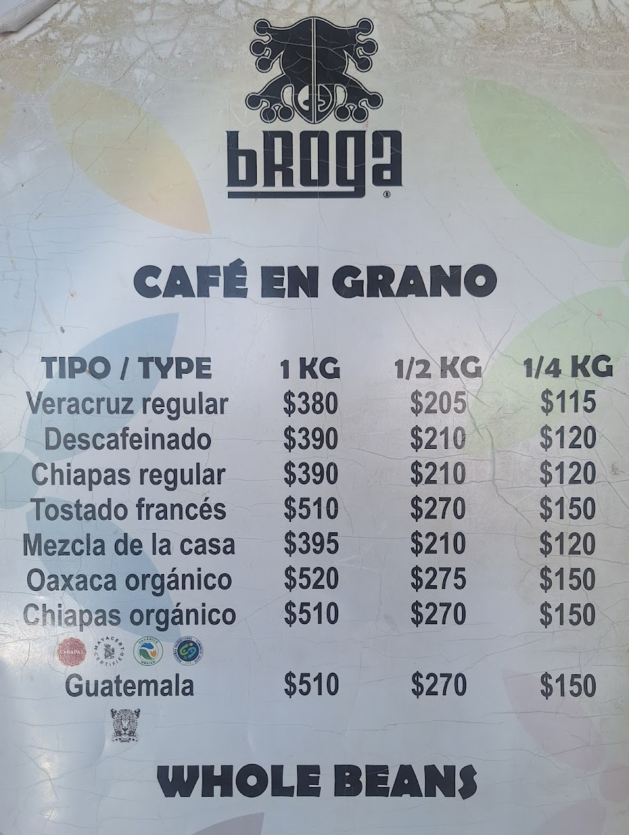Broga BAR & COFFEE DISPENSING Menu